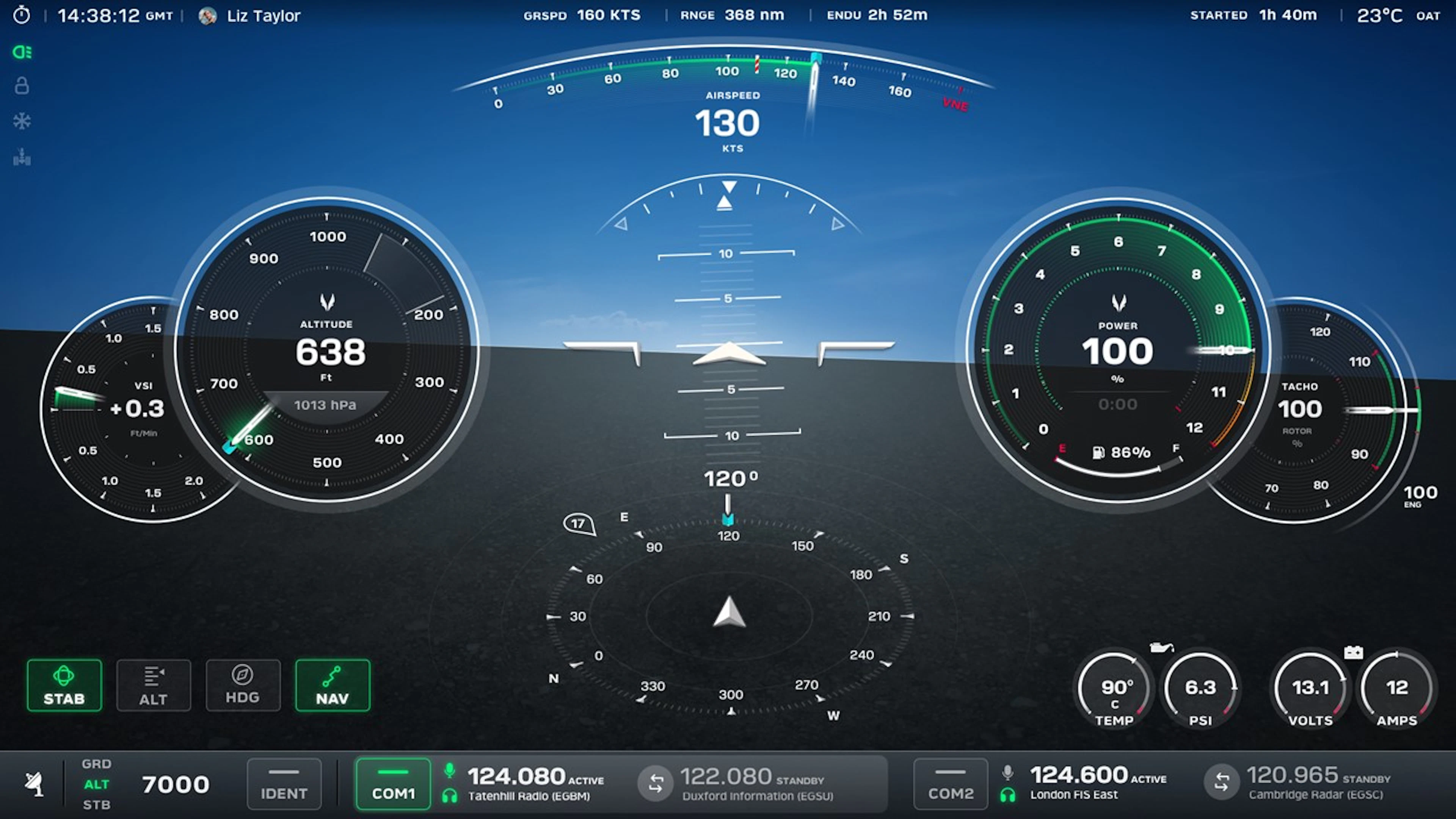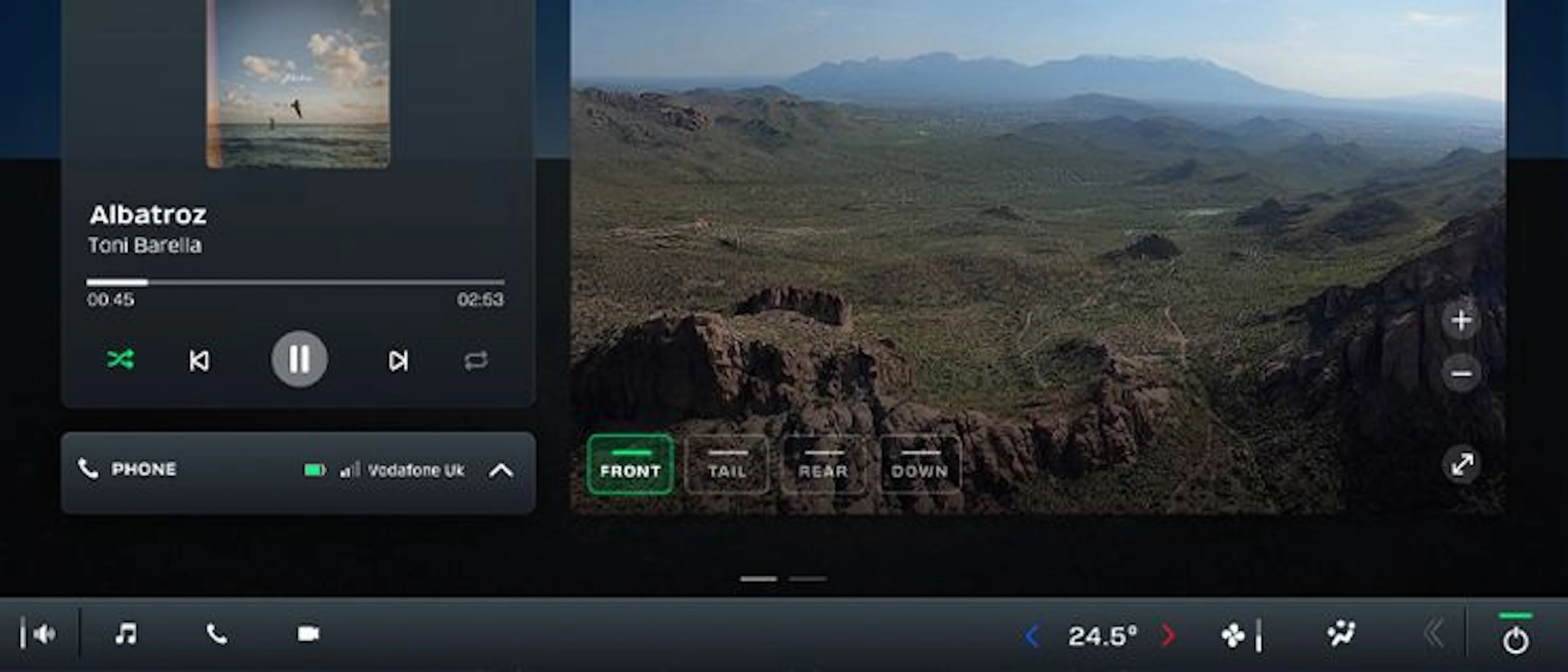 This decision unlocked an exciting opportunity: we now have the freedom to create a fully optimised user interface on the MFD specifically for the non-flying passenger. They can safely and easily manage: Climate Control, Bluetooth Phone Connectivity and Streamed Music, and Multiple Aircraft Camera Feeds.